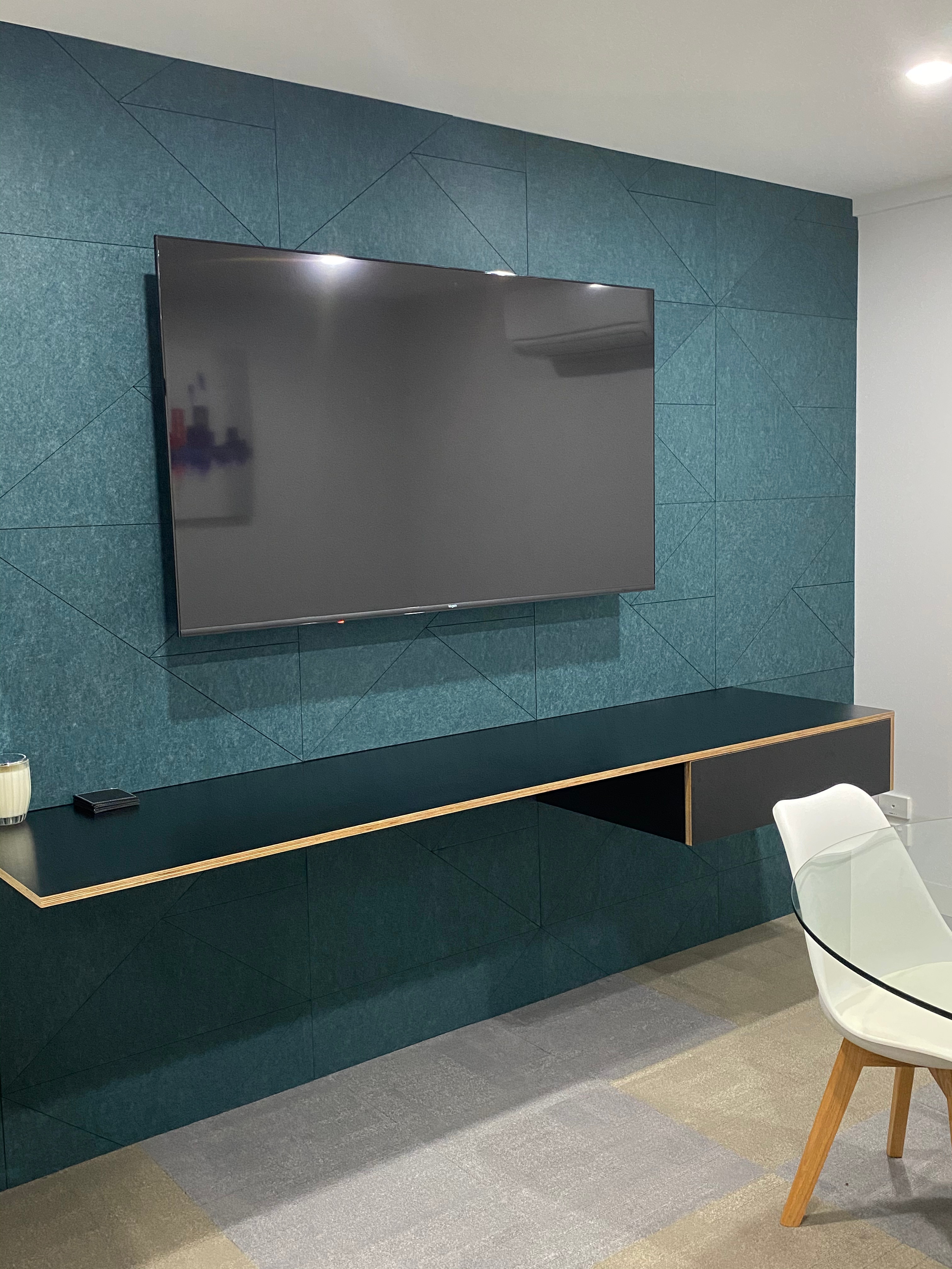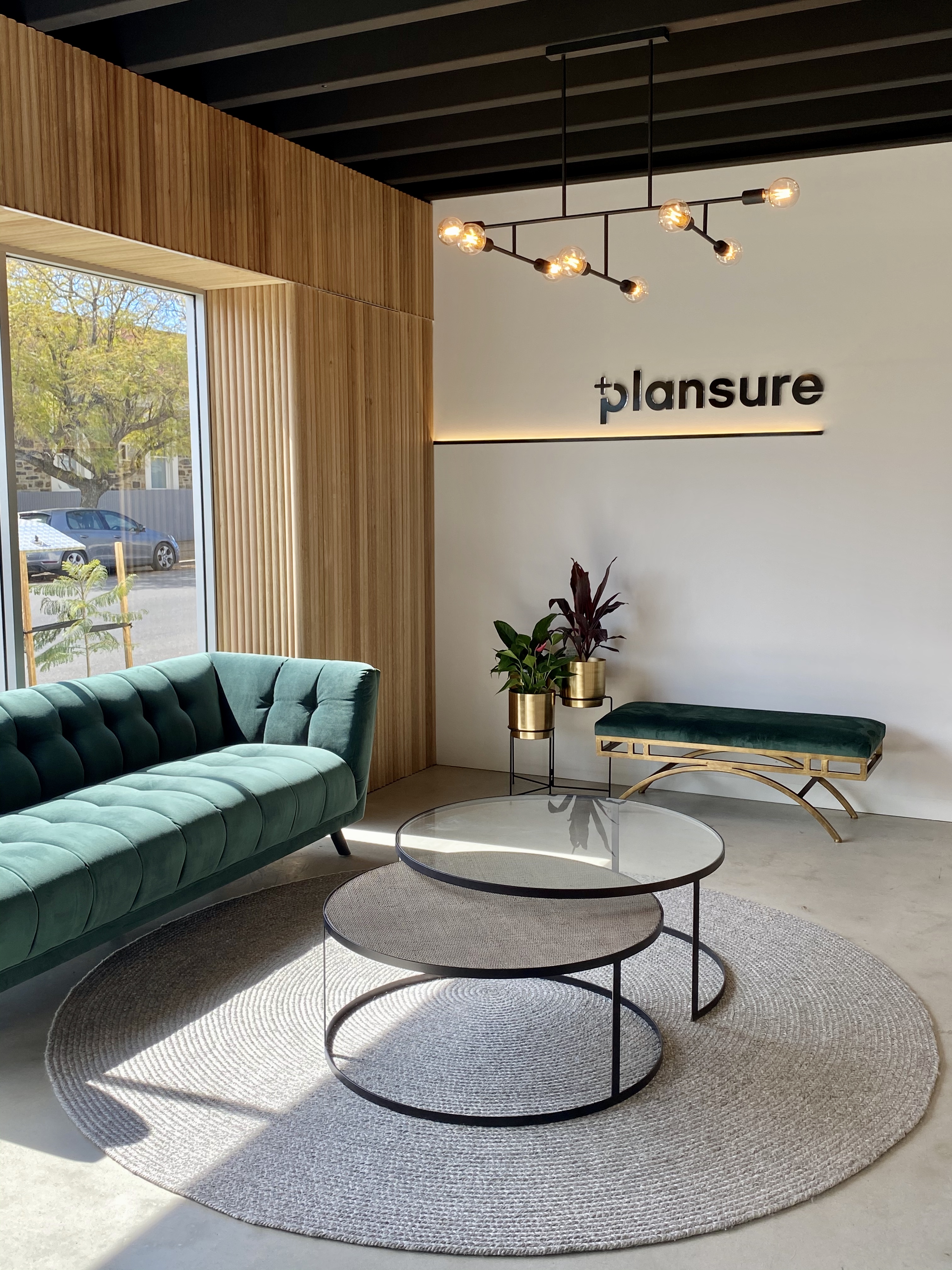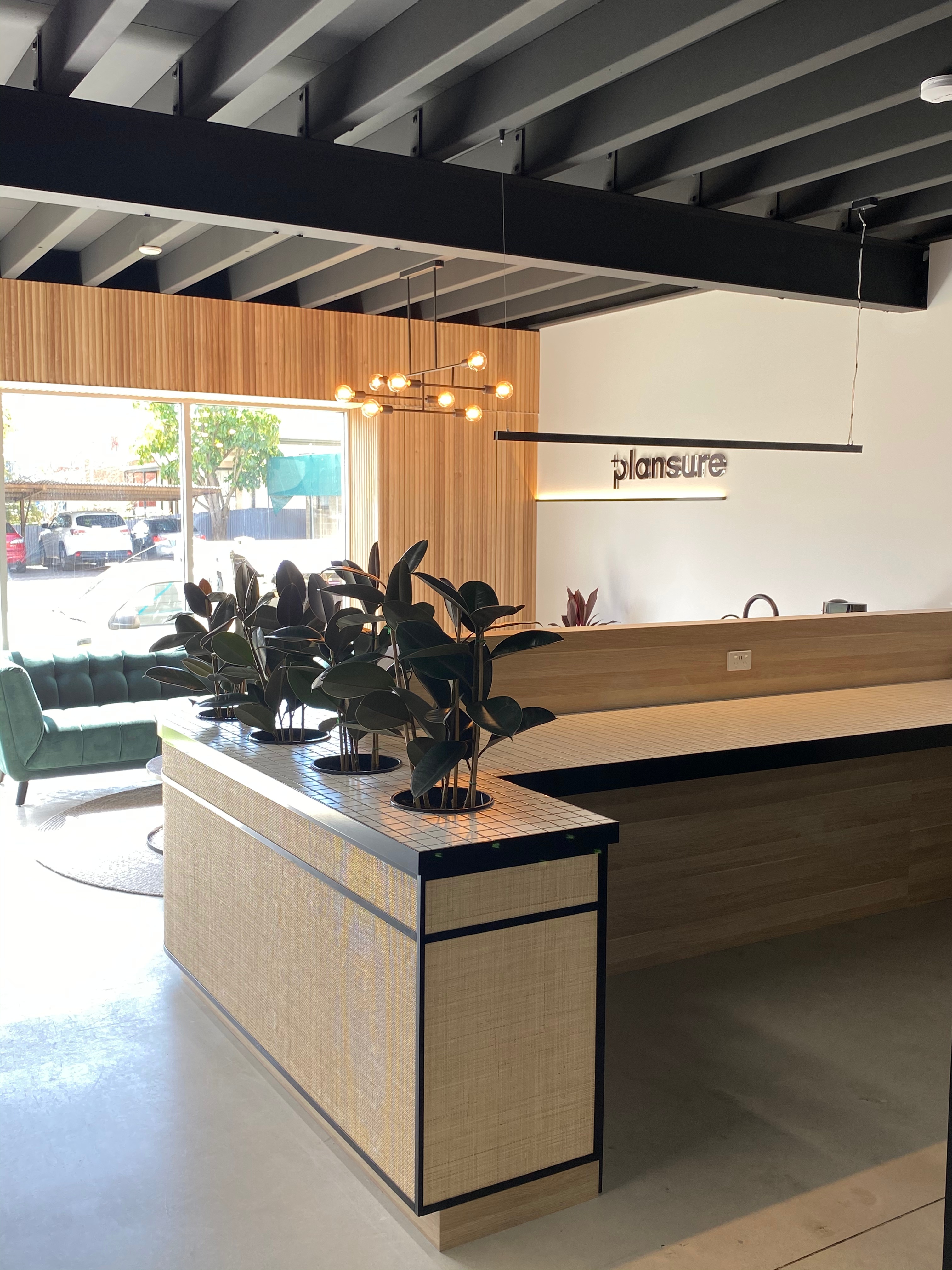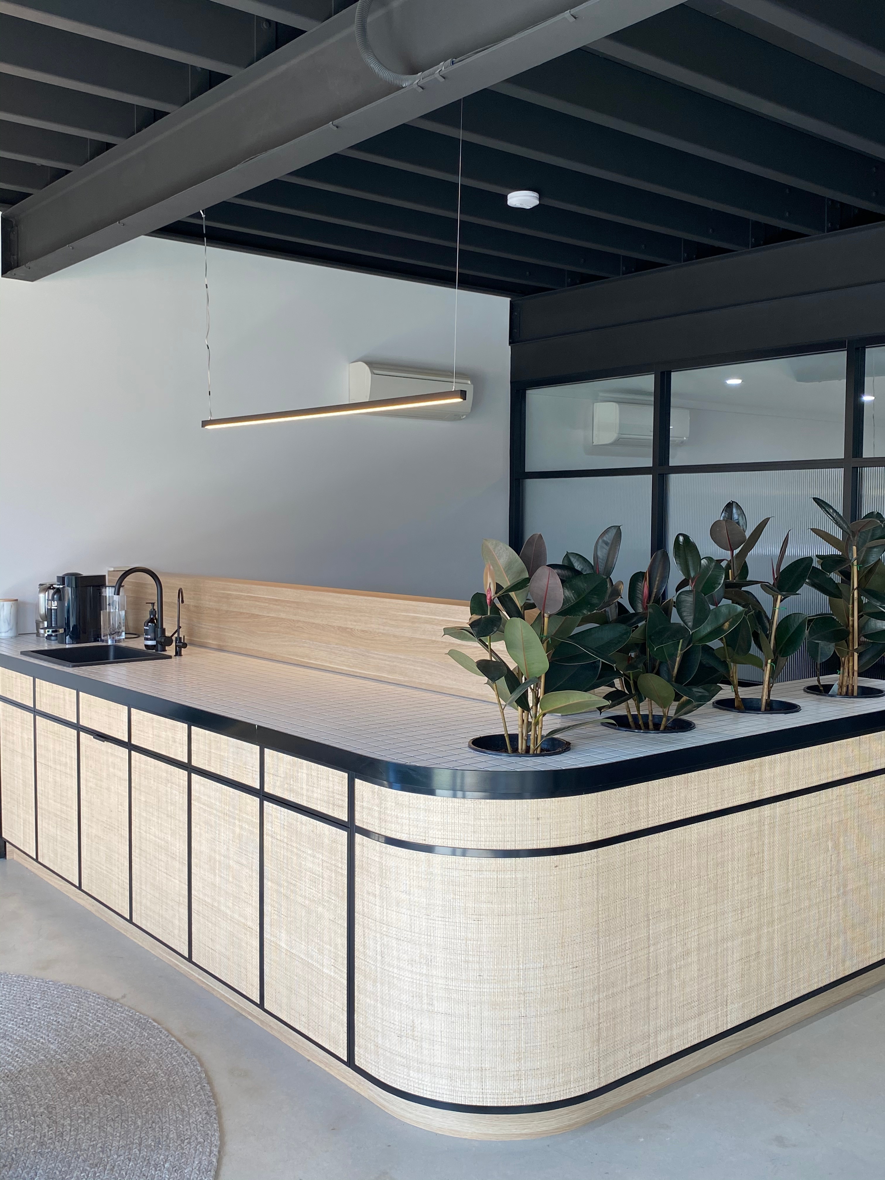 An office fit-out tailored to a client in the financial sector, featuring meeting rooms with fluted glass, a stylish breakout area for coffee and a New York loft- inspired aesthetic.