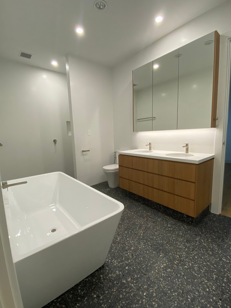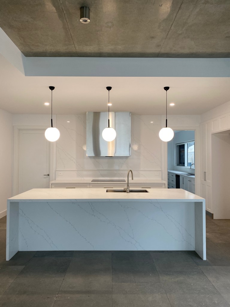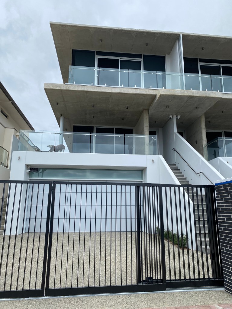 Built on the esplanade to withstand the test of time, this three level concrete home showcases enduring design and craftmanship- complete with a lift, stone cladding and a striking front stone feature.